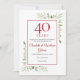Featuring delicate watercolour leaves, this chic save the date anniversary invitation can be personalised with your special 40 years anniversary celebration information, with a ruby background on the reverse. Designed by Thisisnotme©