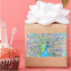 Watercolour and ink painting of a peacock displaying his amazing tail. I painted this from my own photograph taken while on holiday in Devon.