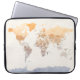 Political world map featuring watercolour filled countries on an off-white aged background. The map includes country names, borders and sea names.