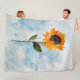Unique Elegant Standing Watercolour Sunflower and Sky Blue Abstract Painting Fleece Blanket.