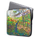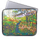 Vintage Art Nouveau Tiffany Stained Glass Window Art Laptop Sleeve Electronics Bag features beautiful forest landscape in springtime of winding Waterfall, blossoming Iris flowers & Cherry Trees, Birch and a Lotus Pond. Exquisite art with an oriental sense of good feng-shui.
