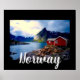 Beautiful scenic photograph of a waterfront cottage with white Norway text overlay
