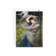 John William Waterhouse Boreas postcard. Oil Painting on Canvas from1903. The English artist John Waterhouse often focused on mythological themes. Boreas is a work dedicated to the Greek god of the north wind and features a young girl in a blue dress walking through a windswept field of daffodils and pink blossoms. The wind catches in her grey shawl and she lifts her arm to cover her head, which is adorned by dark brown hair and a freshly plucked daffodil. A great gift for fans of J.W. Waterhouse, Greek myth, the Pre-Raphaelites, mythological painting, and English Romanticism.