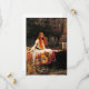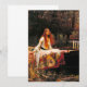 Card featuring John William Waterhouse’s oil painting The Lady of Shalott (1888). A beautiful woman in a white dress escapes on a boat from her fate to look at all the world through a mirror and weave a tapestry from it—but upon viewing Prince Lancelot, the curse follows the Lady of Shalott to her demise. Bright autumnal colours paint this tragic scene. A breathtaking gift for Arthuriana enthusiasts and Pre-Raphaelite collectors.
