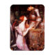 John William Waterhouse Lamia and the Soldier magnet. Oil painting on canvas from 1906. John Waterhouse frequently depicted mythological figures, and Lamia and the Soldier is a lovely example of his love of female mythological figures. Lamia sits at the feet of a soldier clad in metal armour in a pink dress with a snakeskin wrapped about her arm and waste. A beautiful medieval take on a classical theme. A great gift for fans of J.W. Waterhouse, Greek mythology, the Pre-Raphaelites, English Romantic painting.
