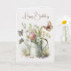 Retro watering can with tulips and butterflies in a watercolor effect for birthday.