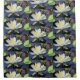 This shower curtain features a water lily pattern.