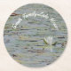 Waterlily Lake Flowers Pastel, Paper Coaster. One of two art renditions of waterlilies & lily pads, in the style of Claude Monet. One white flower encircled by lily pads of various green shades. Fully customizable; make it your own, and transferrable to other products.