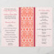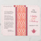 The text on this watermelon pink and coral orange damask wedding program is fully customizable. It is intended to be folded down the middle. To change the text, use the personalize option. For more extensive changes, such as changes to the font, font colour, font size, or text layout, use the customize it option. Once your text is finalized, if you need to move it around a bit, you can do that using the customize it option. This damask special occasion program is currently customized as a wedding program, but it would work well as a program for other special occasions as well. Really, this would even make a really nice church bulletin with changes to the text. Let your imagination lead you.