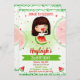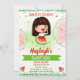 Cute invitation for your little sweetie's birthday party featuring red and green watermelons and brunette girl.
