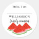 The stickers say "Hello, I am" with a space for each family member to write their name.