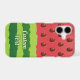 Red and green watermelon flag with stripes and seeds. Custom text.