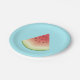 Illustration of a cartoon watermelon slice on a blue background colour. Perfect for those summer picnics, for example!