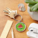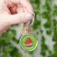 Ripe red watermelon slice icon. Custom background colour. Two custom text fields on circle.
