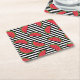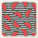 Watermelon on Black & White Stripes Pattern Square Paper Coaster
