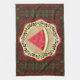 watermelon on olive plate with Palestinian tatreez Kitchen Towel