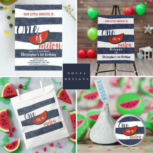 Featuring classic blue and white stripes and a playful "One in a Melon" graphic, this collection includes everything you need for a memorable first birthday bash. From invitations and decorations to party favours and more, each element captures the spirit of the celebration in a cute and cohesive manner.
