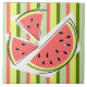 Cool design with a retro touch featuring stylised pieces of watermelon on a striped background. A customizable design for you to personalise with your own text, images and ideas. An original digital art image.