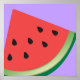 Mid century modern pink and green watermelon on a bright purple background. Super cute in any kitchen - pair along with the other fruit posters to make a statement. Easily change the background to match your decor if you like.