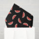 Watermelons are a fun summertime snack. This design features watermelon slices on a black background.