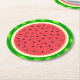 This pretty watermelon paper coaster design has a round fruit that looks like it's been sliced, so the juicy pink-red flesh of the melon shows through, along with plenty of black watermelon seeds. The berry also has a speckled green, mottled rind. This is a cute, whimsical summertime design, perfect for your summer party!
