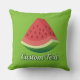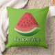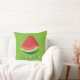 Ripe red watermelon slice on light green background. Custom text on both sides.