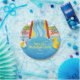 Make a big splash at a child's birthday party held at a water park, swim club, or splash pad with this paper plate. Water funnels down a bright yellow slide to crash into a bright blue pool filled with floaties and fun on a summer's day. Available with matching products.