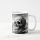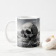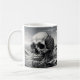 Beware the Watery Grave coffee mug - a chilling reminder of the fragility of life. This haunting design features a solitary skull submerged in the vast, unforgiving ocean, surrounded by crashing waves and ominous clouds.
