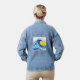 Illustrtion of a big blue ocean wave and the sun shining behind it.