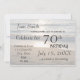 70th birthday party invitation card featuring a beautiful photo of the waves crashing on the beach at sunset. Customizable with your party details.