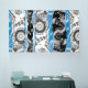 Make a monumental statement with this 6' x 10' Vinyl Banner featuring Wave Mechanism – Abstract. The artwork presents a symmetrical composition where circular elements resembling gears repeat vertically, evoking the rhythm of a contemplative machine. At the center, a wavy blue band cuts through the structure, breaking rigidity with fluidity — like a digital river or expanding frequency.