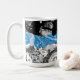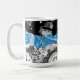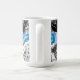 The Wave Mechanism – Custom Mug transforms abstract art into a daily ritual. Symmetrical circular motifs evoke gears in motion, while the bold blue wave band flows across the center, balancing structure with fluidity.