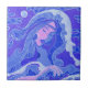 Ceramic tile featuring fairytale illustration, beautiful Asian water princess rising from the sea foam, sky with stars, clouds and full moon behind her. Blue, violet and pink colours. Fantasy art, mermaid theme, acrylic painting.
