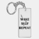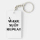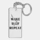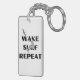 This keychain features a dynamic graphic design of a person wake surfing, with a stylized wave below and a bird flying overhead. The words “WAKE SURF REPEAT” are prominently displayed above and below the surfer in bold, capital letters. This design captures the thrill and excitement of wake surfing, making it a perfect accessory for water sports enthusiasts.
