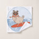 Wave riding happy pug dog on surfboard keychain wash cloth