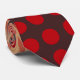 This necktie has a mid-century modern design of orange wavy lines on a gold background, red circles on a brown background, and a grey background. If you want the same design with different colours, message me.