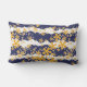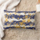 Waves, navy blue, mustard yellow, white, flower lumbar pillow