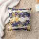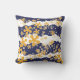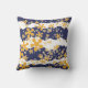 Waves, navy blue, mustard yellow, white, flower throw pillow