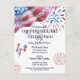 "Independence Day Celebration" with a waving flag and fireworks in watercolors. White background with dark blue text on front.