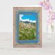 Scrapbook-look photo greeting card featuring colourful waving grasses in a meadow with mountains and vibrant blue sky in background. This card can be personlized with you own text by clicking the "Customize it" button, or left blank. Original photography.