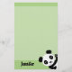 A set of stationary featuring a simple digital illustration of a waving black and white panda bear, sitting happily on a pale green background. You can customise the name at the bottom to really personalise it.