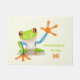 As its name suggests, the red-eyed tree frog has red eyes with vertically narrowed pupils. It has a vibrant green body with yellow and blue, vertically striped sides. Its webbed feet and toes are orange or red. The skin on the red-eyed tree frog's belly is soft and fragile, whereas the back is thicker and rougher. Red-eyed tree frogs have sticky pads on their toes.