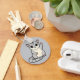 This friendly cartoon-style sugar glider features soft grey fur, a creamy beige belly, and large expressive eyes with a warm, innocent look. One paw is raised in a cute waving gesture, while the striped tail curls around its body. Clean outlines and a simple non-black background give the design a modern, sticker-like appeal. Perfect for sugar glider fans and anyone who loves charming, approachable animal artwork.