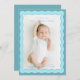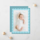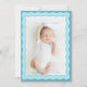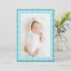 Birth Announcement card with two blue wavy borders in different colour, cute and simple design.