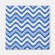 Features a beautiful pattern of blue and white waves. They are made up of curving lines, geometric forms that are entirely abstract but also inspired by the natural world. A clean and stylish design.