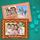 This photo Christmas card featuring a retro wavy white border on a rust coloured background offers space for 3 photos and a personal message.