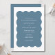 Wavy Border Modern Retro Dusty Blue Wedding Invitation