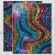 A stunning abstract design featuring layers of multicolor glitter in a wavy rainbow formation.