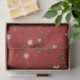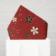 Red background with delicate wavy lines, adorned with black and white flowers in a scattered pattern, exuding a sense of elegance and harmony.