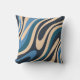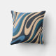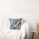 Wavy Loops Retro Abstract Pattern Blue and Beige Throw Pillow